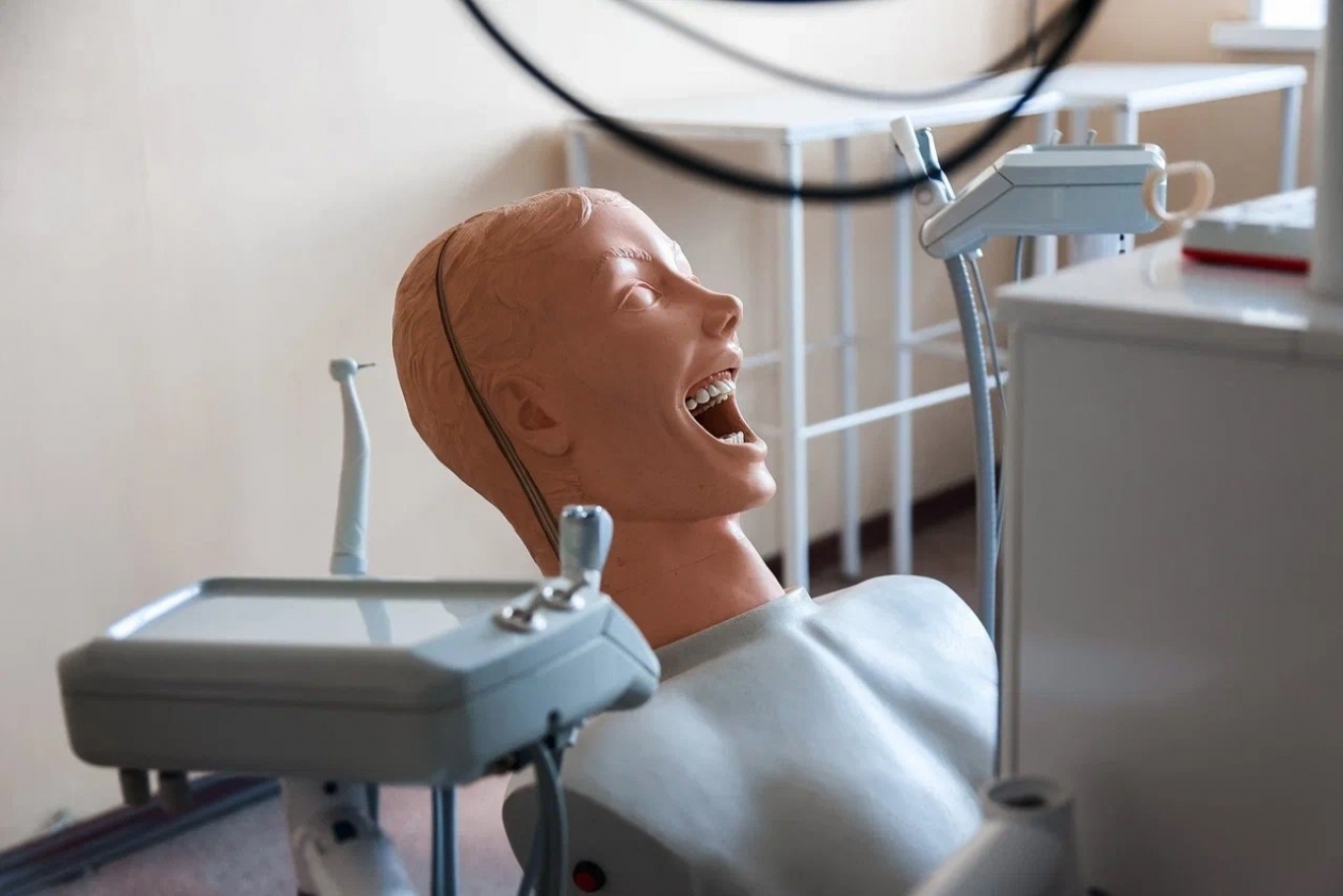 — Сейчас поступили шесть современных тренажеров для подготовки студентов специальности "Стоматология". 10 лет назад у нас было иностранное оснащение, к которому сложно было найти комплектующие, поэтому те "фантомы" бывали зачастую не задействованы, к тому же со временем оборудование морально устарело. С тех пор парк мануальных стоматологических тренажеров несколько раз пополнялся, не считая частных замен,