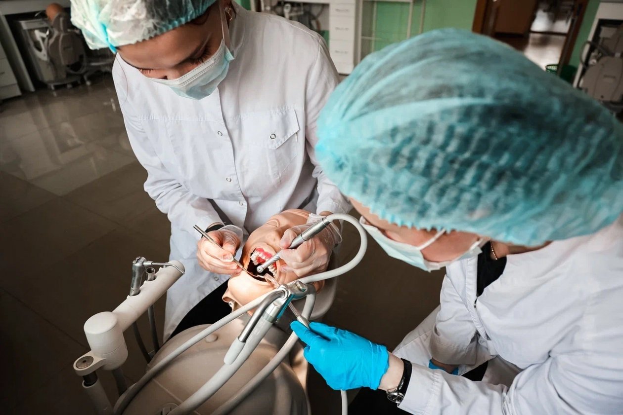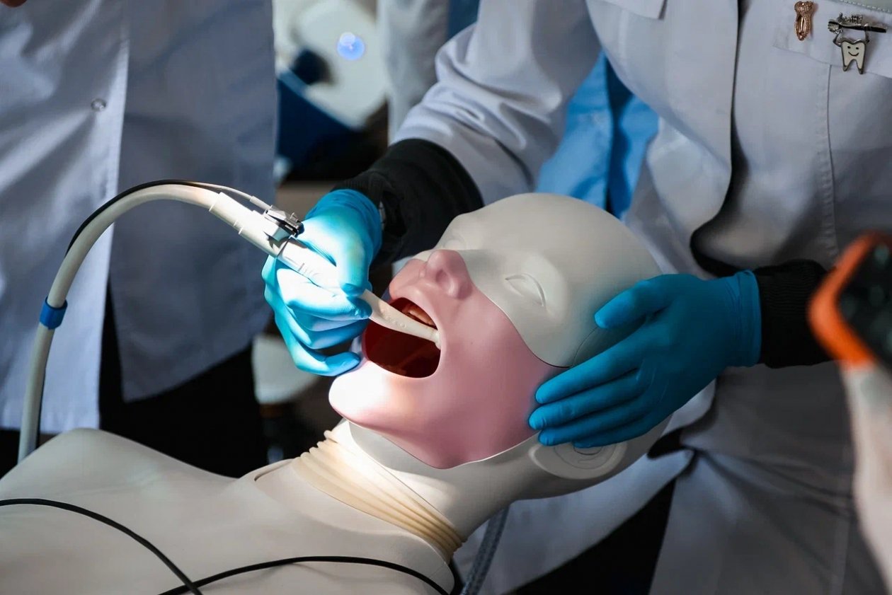Изначально практическая подготовка ведется на базе отдела симуляционно-тренинговых технологий по стоматологическому профилю института симуляционных и аккредитационных технологий университета, который оснащен мануальными digital-манекенами, то есть современными интерактивными тренажерами. Эти симуляторы позволяют оттачивать практические мануальные навыки с использованием компьютерных технологий. Здесь воспроизводится реальная клиническая ситуация, на которой студент должен отработать или продемонстрировать практические манипуляции с "пациентом".