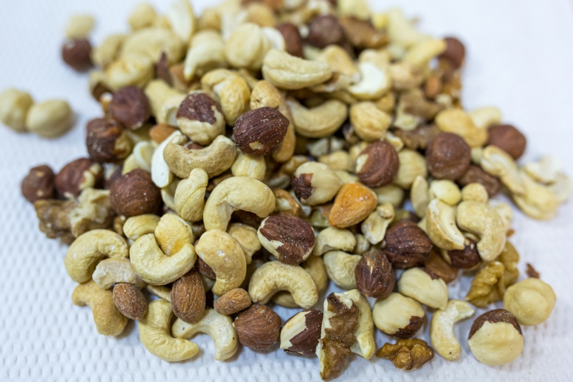 Похожая ситуация складывается и с орехами. После промывания под краном их следует на час замочить в теплой воде. Далее еще раз сполосните и отправьте в духовку. Температура в ней не должна превышать 60 градусов. Внимательно смотрите, чтобы орехи не подгорели.
