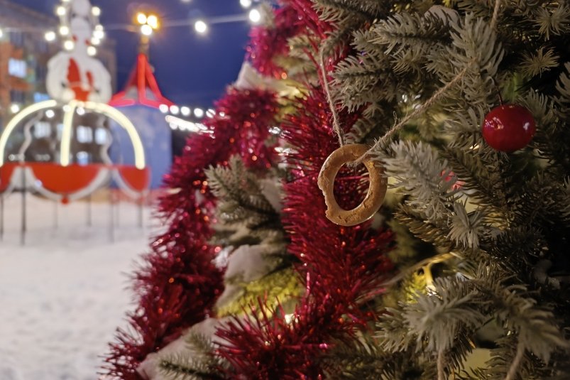 Неизвестные попробовали на зуб украшения праздничного дерева от местного бизнеса