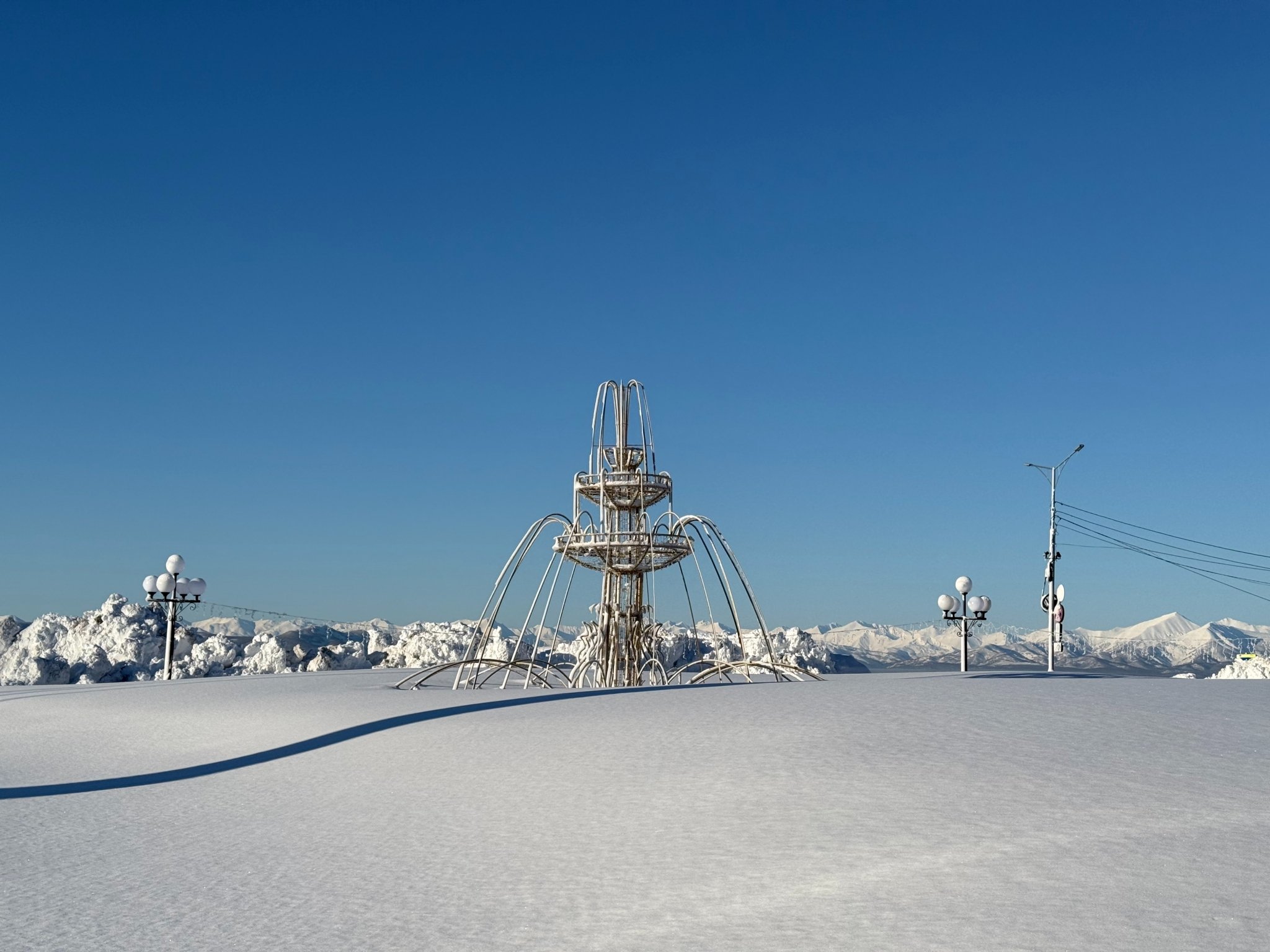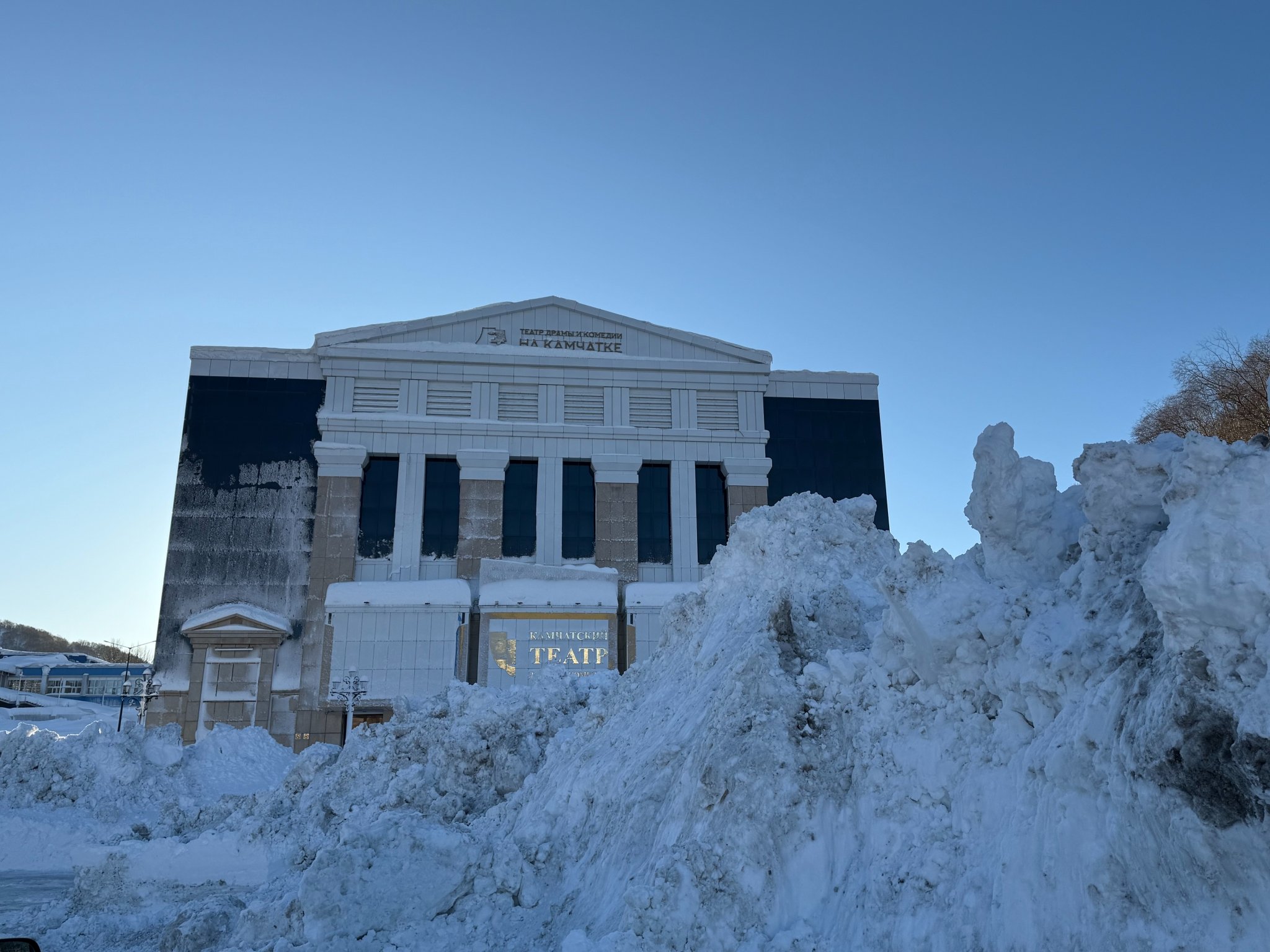 Горы снега перед храмом Мельпомены. Фото: Ольга Семёнова, ИА KamchatkaMedia