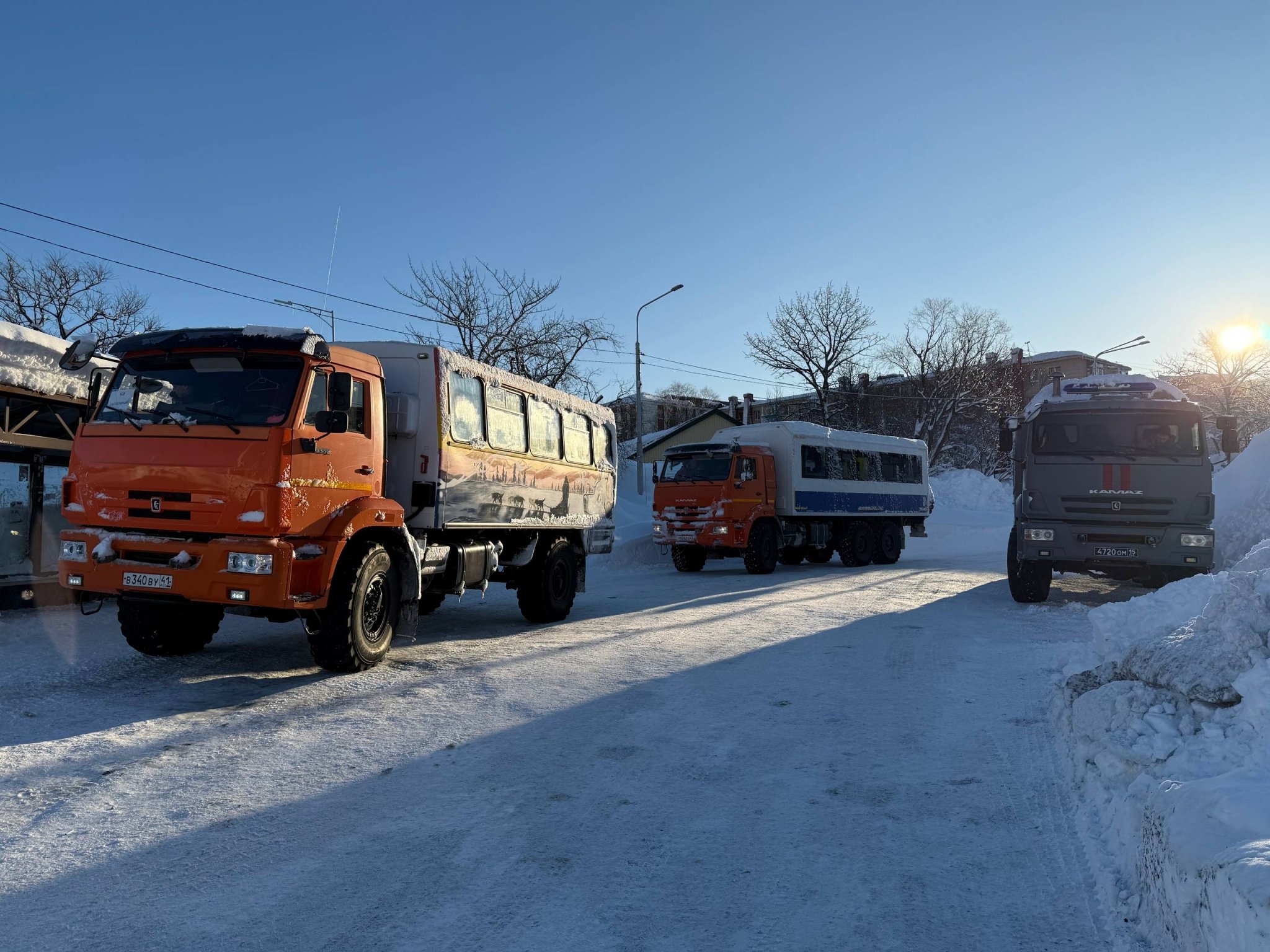Транспорт для горожан предоставили Росгвардия и МЧС. Фото: Ольга Семёнова, ИА KamchatkaMedia