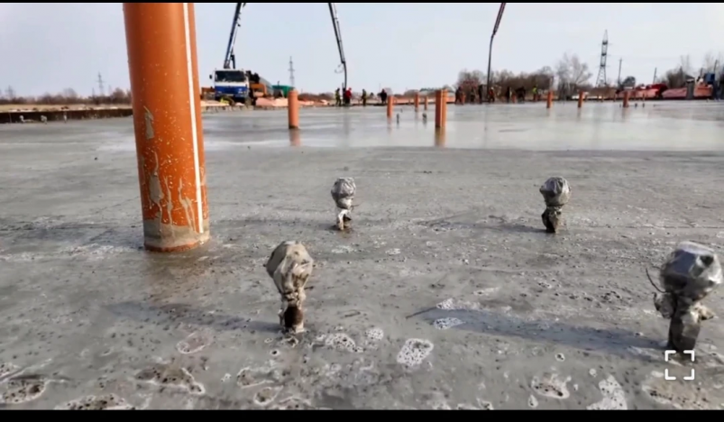 В фундамент будущего Центра строители залили более 650 тонн бетона специальных марок. Для равномерного набора прочности ведется прогрев бетона электрокабелем. Такие технологические решения необходимы для того, чтобы обеспечить долговечность конструкции.