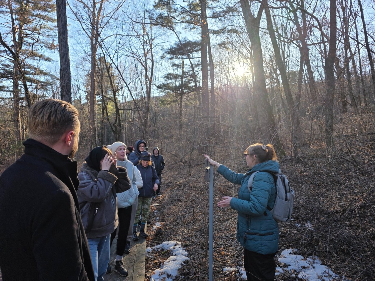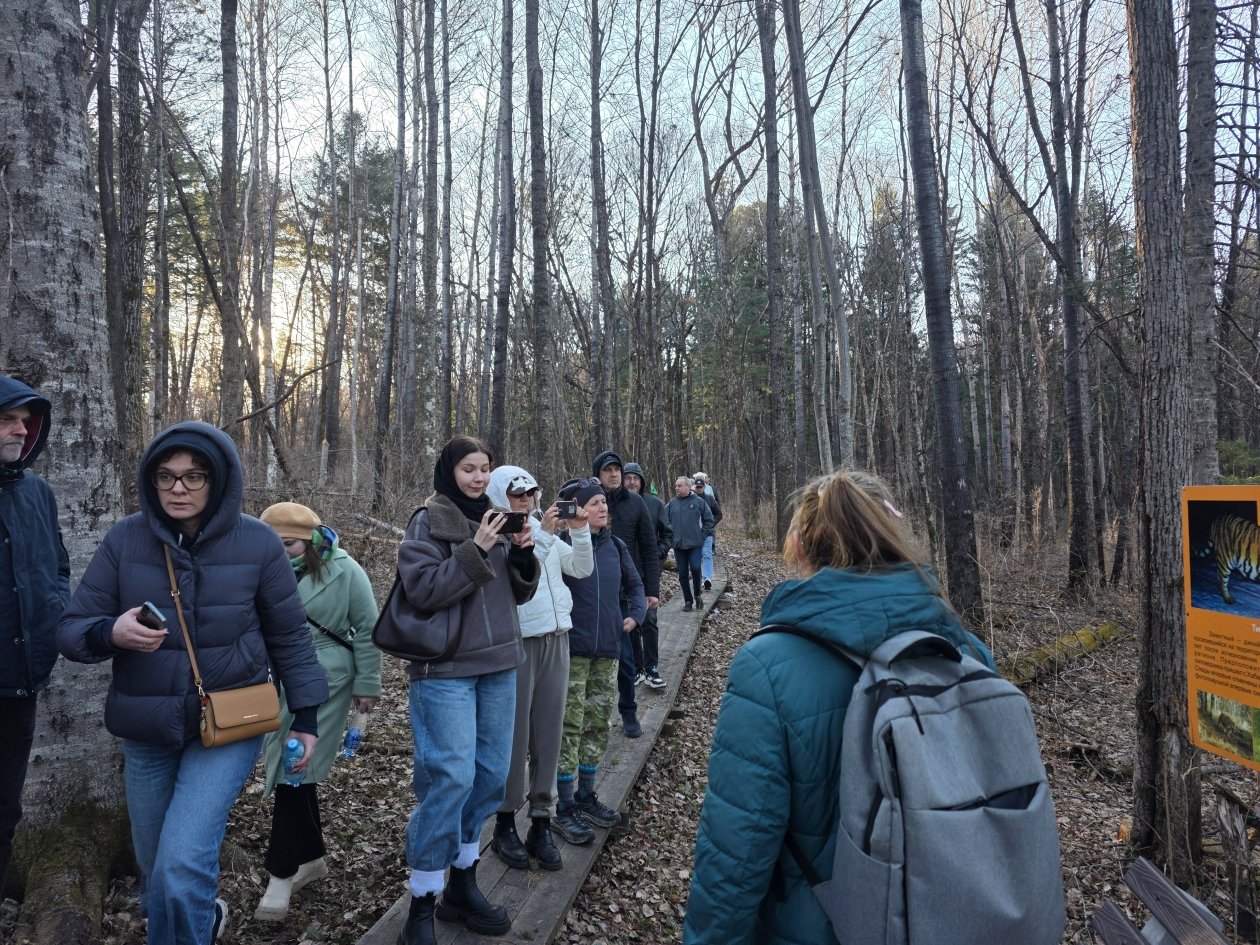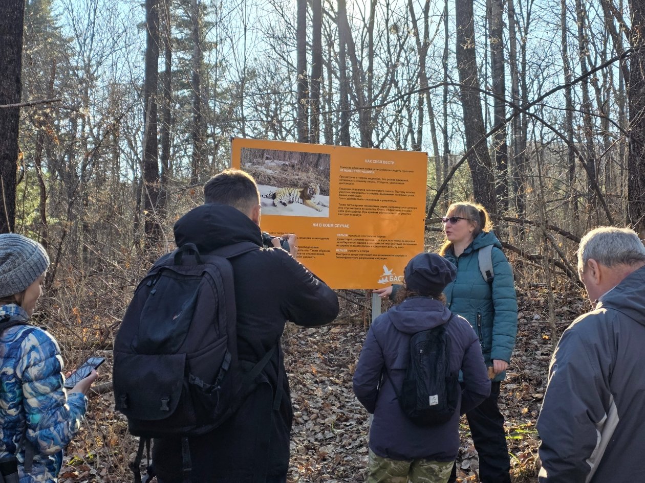 История жизни полосатых хищников на территории заповедника стала лейтмотивом прогулки. Гостям показали места регулярных выходов тигров, рассказали о методике их учёта по следам на снегу и объяснили, как фотоловушки помогают вести "перепись населения". Журналисты узнали, что "Бастак" — одна из ключевых территорий, где восстанавливается популяция краснокнижного амурского тигра.