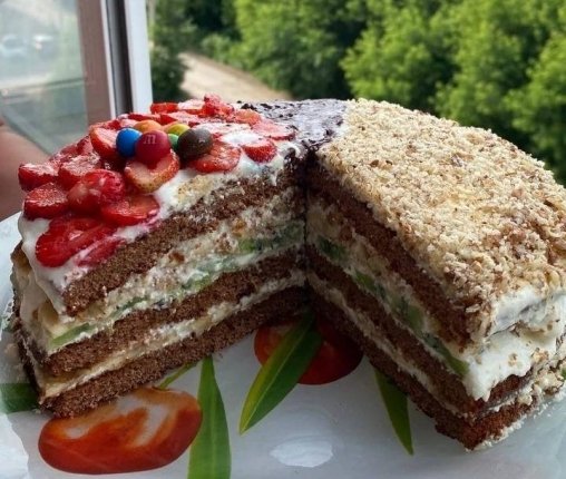 Ваш бисквитно-фруктовый торт готов! Приятного чаепития!